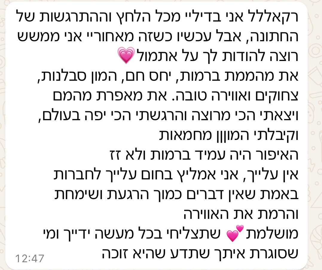 מה שהופך את האיפור שלי למיוחד, הוא התחושה הסקסית שהוא נותן לכל אחת כשהיא רואה את עצמה מאופרת.