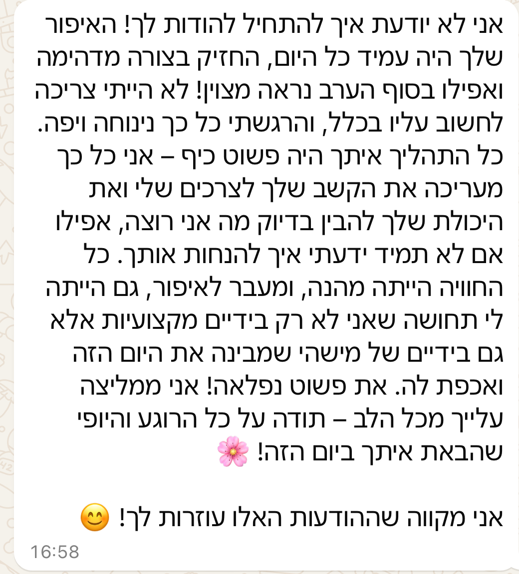 אני גם מלמדת אותך ידע בשיווק לפי הצורך האישי שלך כדי שתוכלי להגיע ליומן מלא.